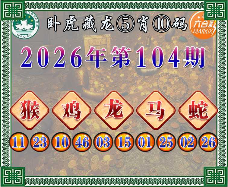 104期:〖卧虎藏龙〗 📙⑤肖⑩码📙【猴鸡龙蛇】开:马01